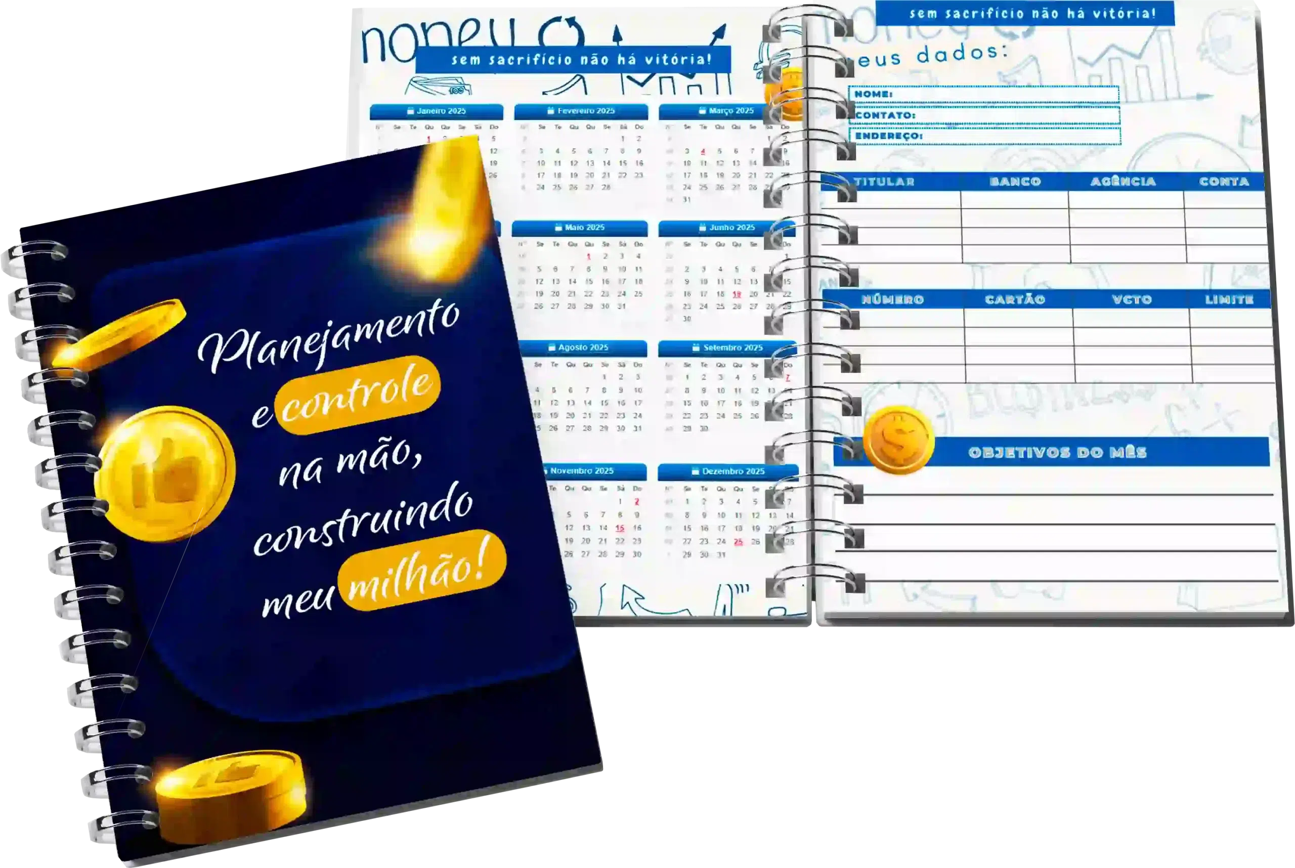 Cada planner é pensado para se adaptar às suas necessidades e objetivos, permitindo que você personalize conforme a sua necessidade e use de forma fácil e prática.